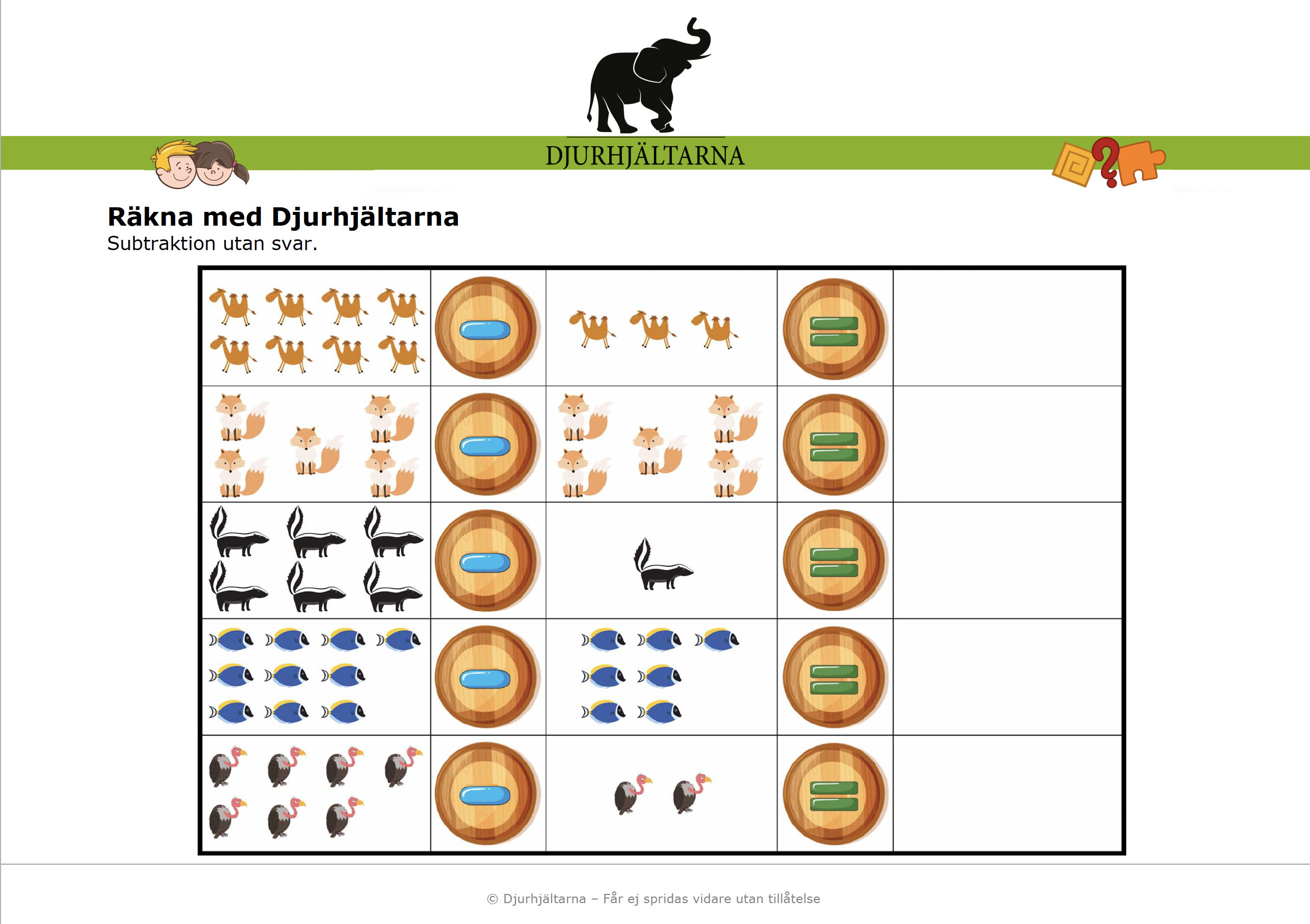 - 2 st där barnen tränar på subtraktion med svar